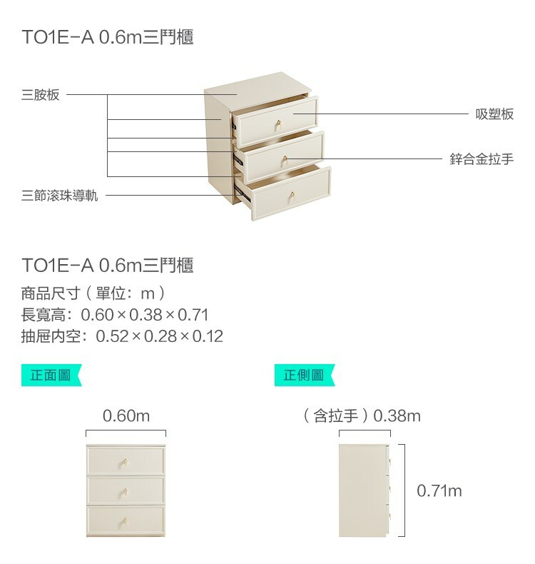 *注意:以下為情境示意圖,實際商品款式為法式奶油風0.6M三斗櫃 TO1E