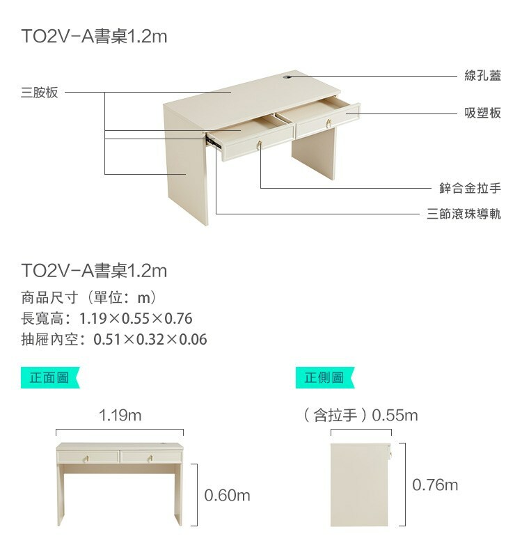 *注意:以下為情境示意圖,實際商品款式為奶糖系列1.2M雙抽書桌 TO2V