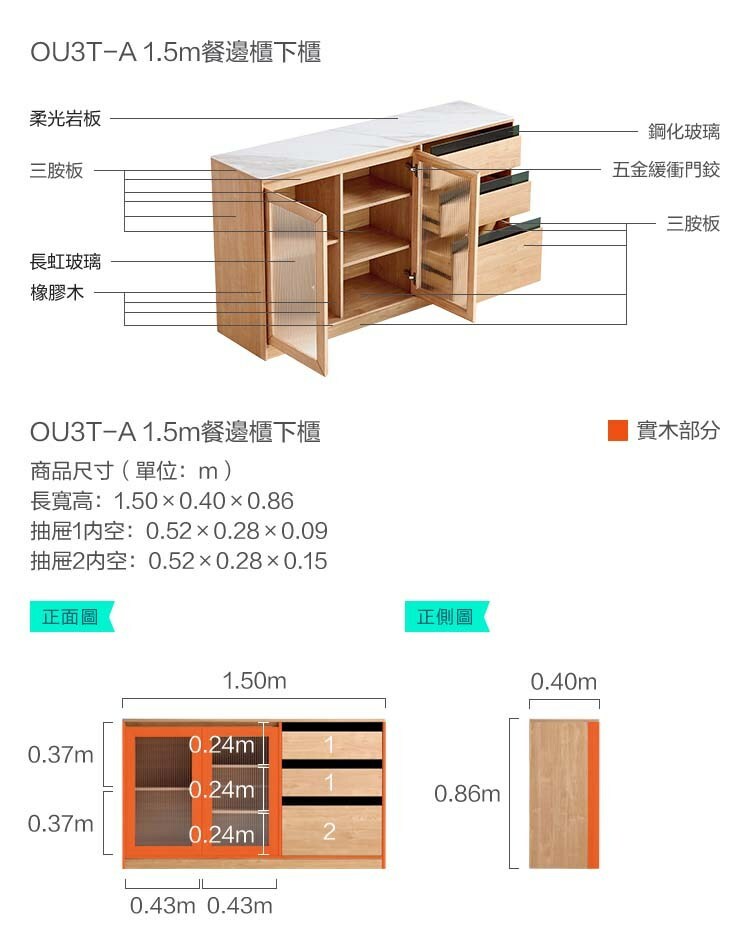 *注意:以下為情境示意圖,實際商品款式為圓滿多功能岩板1.5M餐邊櫃 OU3T