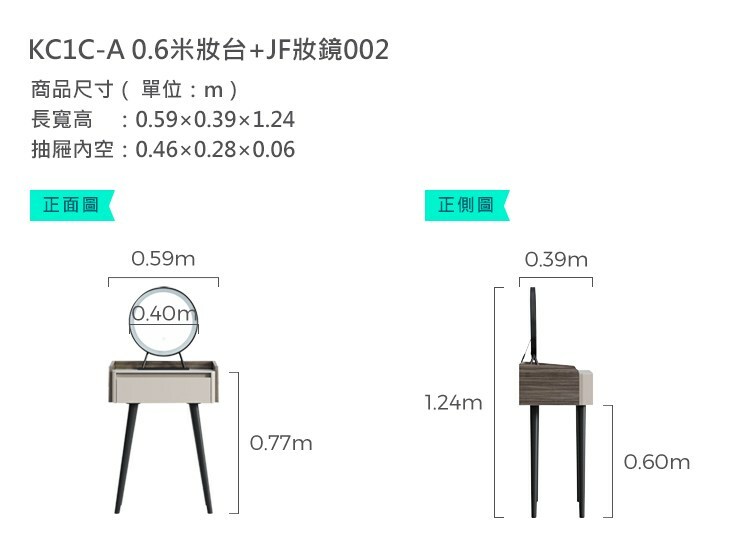 *注意:以下為情境示意圖,實際商品款式為現代簡約灰木色0.6M單抽化妝桌組 KC1C (附妝凳 JF1H)