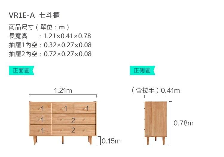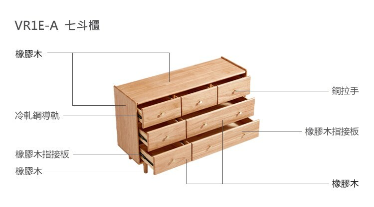 *注意:以下為情境示意圖,實際商品款式為北歐森鄰系列實木1.2M七斗櫃 VR1E