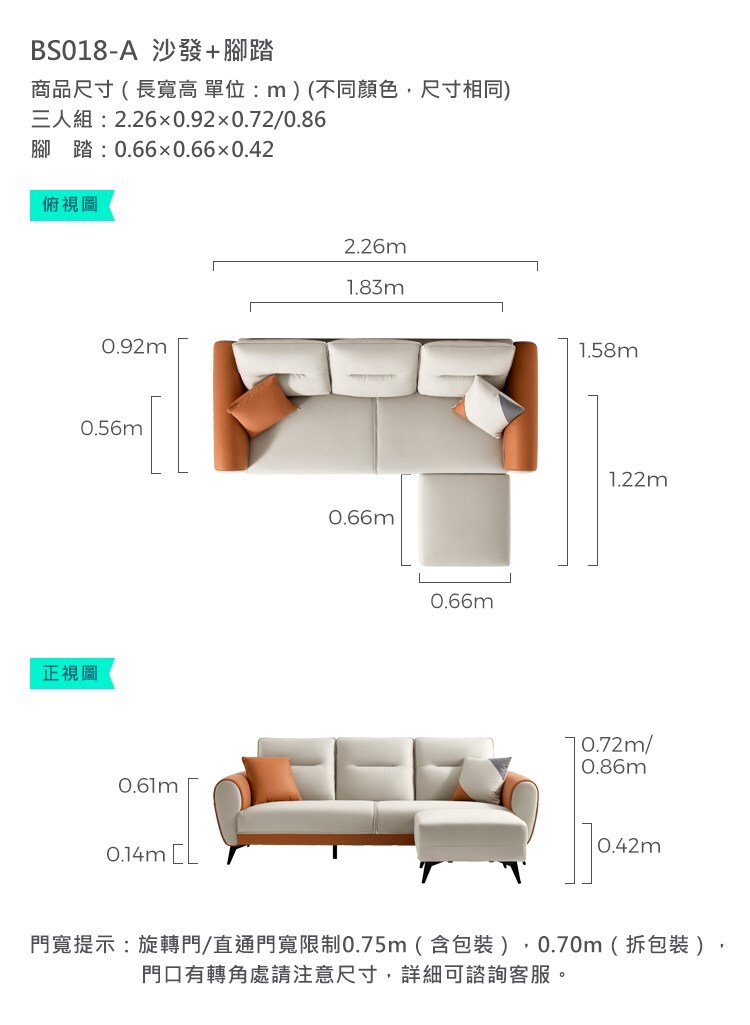 *注意:以下為情境示意圖,實際商品款式為時尚拼色科技布三人沙發 BS018-柑橘色