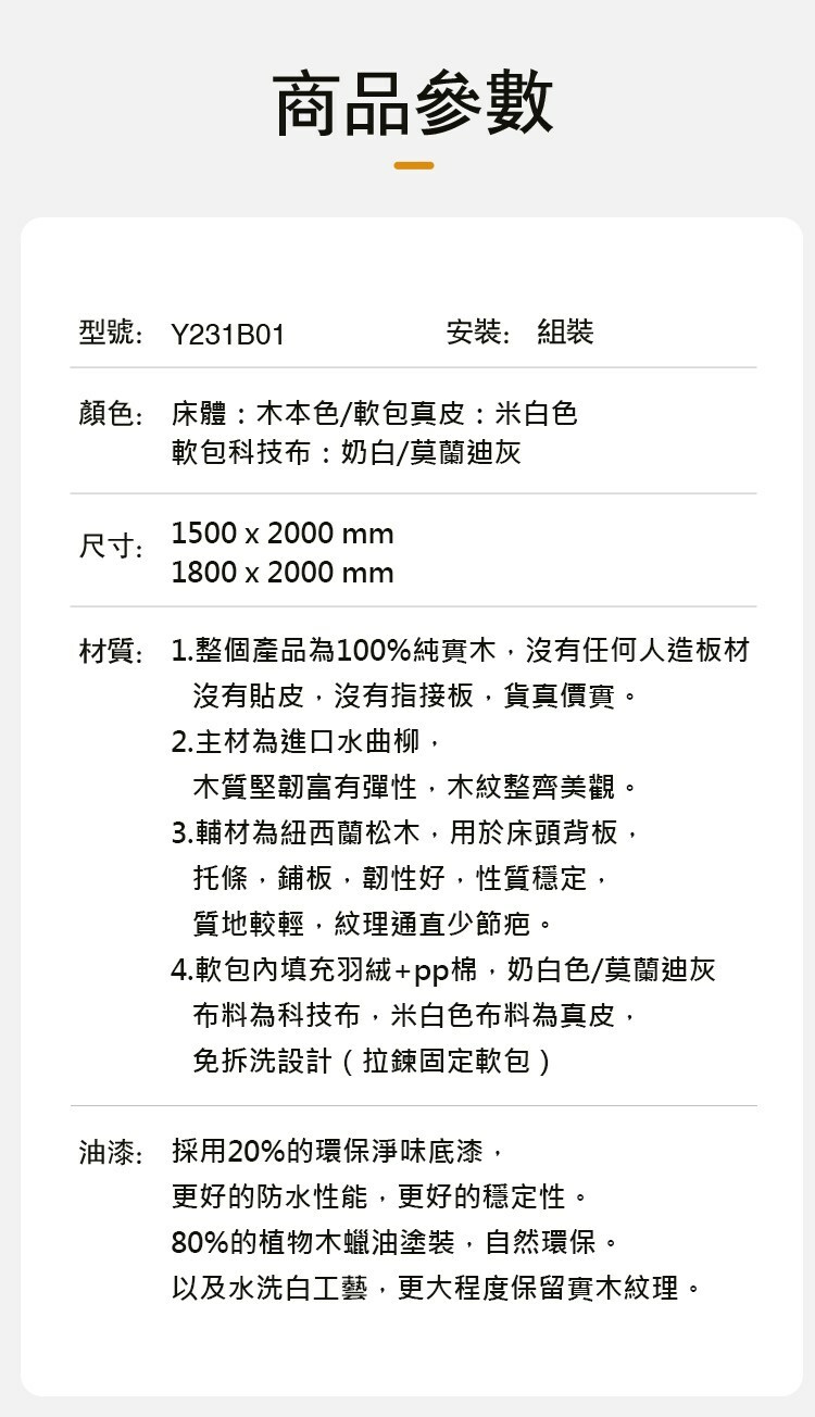*注意:以下為情境示意圖,實際商品款式為奶油風真皮背靠雙人180x200實木床架 Y231B01 米白色