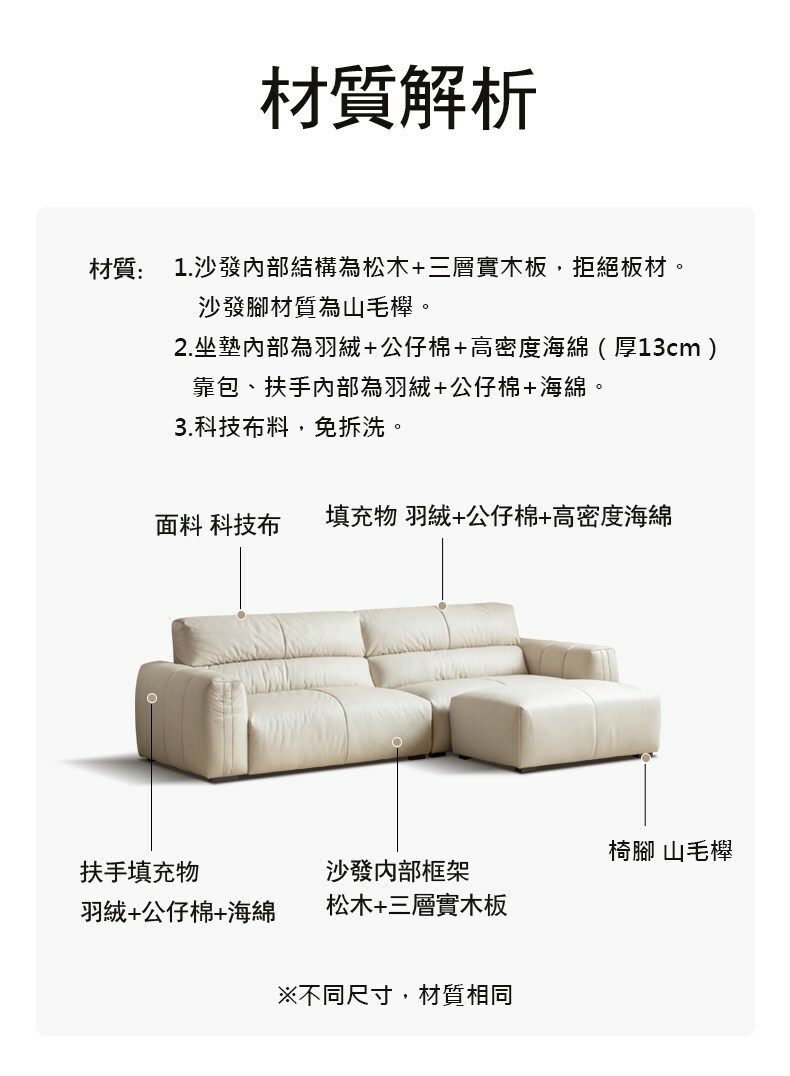 *注意:以下為情境示意圖,實際商品款式為富士科技布羽絨四人座布沙發+腳凳 S03203