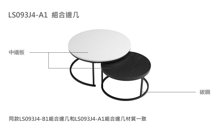 *注意:以下為情境示意圖,實際商品款式為北歐創意圓形組合邊几 LS093J4 (白大黑小)