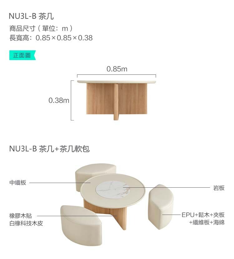 *注意:以下為情境示意圖,實際商品款式為奶油侘寂風岩板附凳茶几 NU3L