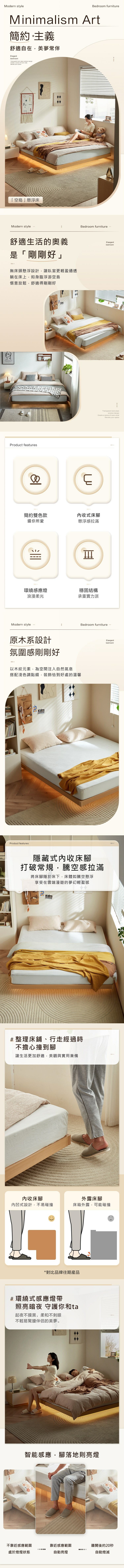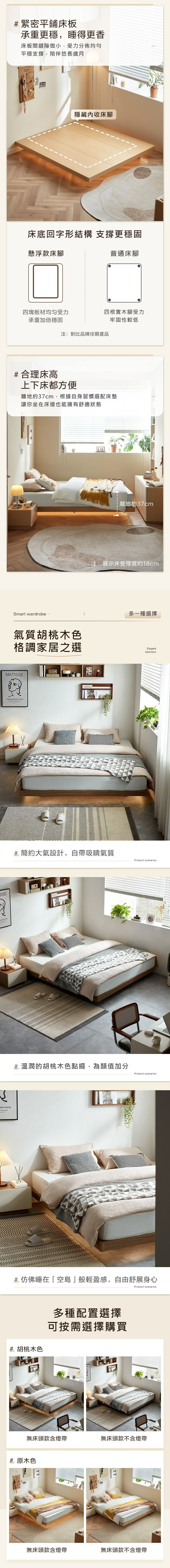 *注意:以下為情境示意圖,實際商品款式為空島無床頭雙人150x200懸浮床架 UV1A-原木色 (無燈款)