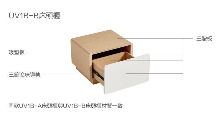 *注意:以下為情境示意圖,實際商品款式為空島單抽床頭櫃 UV1B-原木色