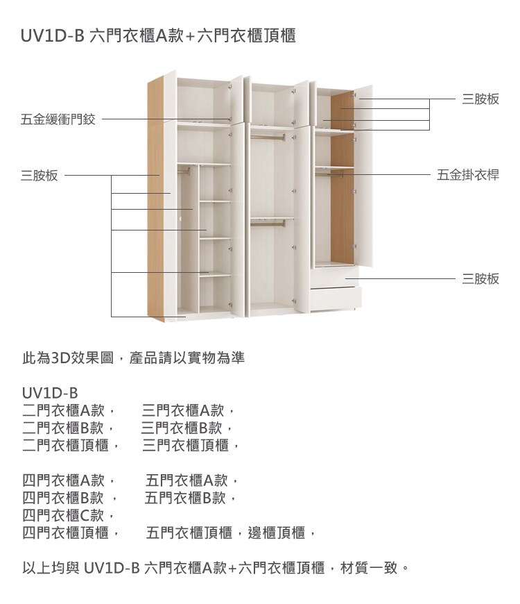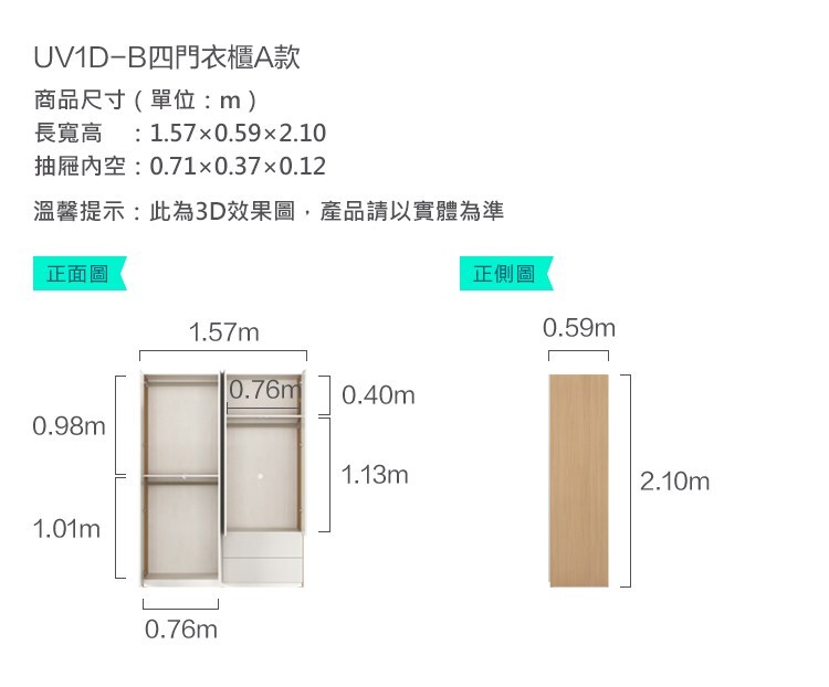 *注意:以下為情境示意圖,實際商品款式為空島四門雙抽上下雙桿衣櫃 UV1D-原木色