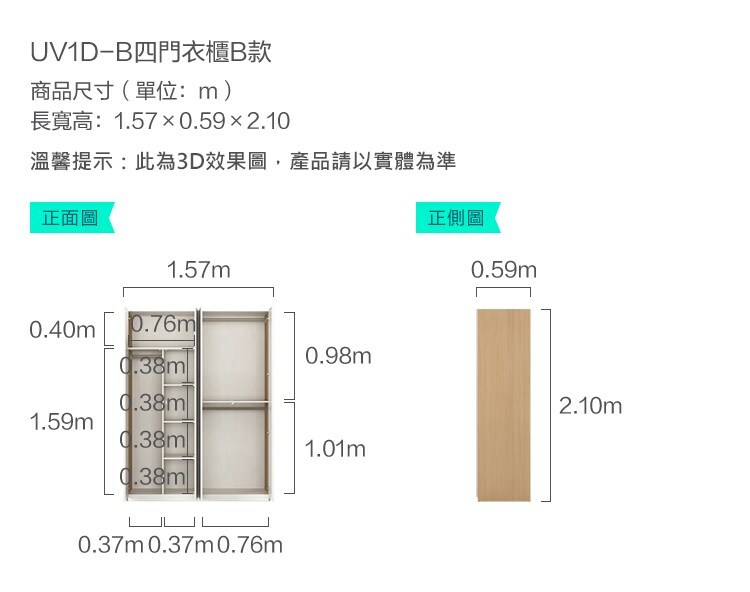 *注意:以下為情境示意圖,實際商品款式為空島四門衣櫃 UV1D-原木色