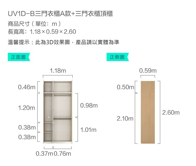 *注意:以下為情境示意圖,實際商品款式為空島三門衣櫃 UV1D-原木色 (附頂櫃)