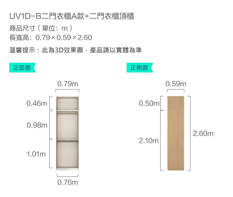 *注意:以下為情境示意圖,實際商品款式為空島雙門衣櫃 UV1D-原木色 (附頂櫃)