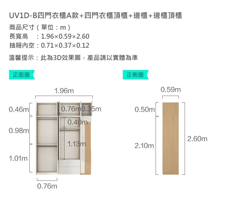 *注意:以下為情境示意圖,實際商品款式為空島四門雙抽上下雙桿衣櫃 UV1D-原木色 (附邊櫃及頂櫃)