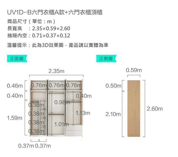 *注意:以下為情境示意圖,實際商品款式為空島六門衣櫃 UV1D-原木色 (附頂櫃)