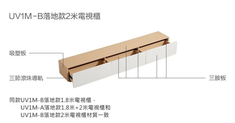 *注意:以下為情境示意圖,實際商品款式為空島2M三抽儲物電視櫃 UV1M-胡桃色