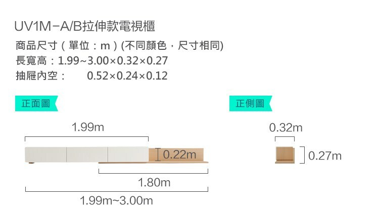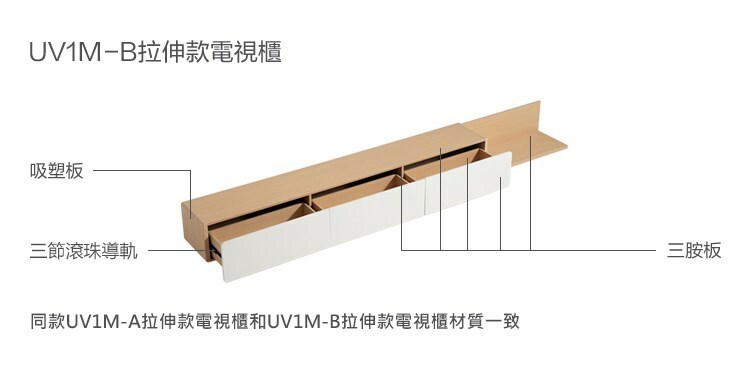 *注意:以下為情境示意圖,實際商品款式為空島三抽可延伸儲物電視櫃 UV1M-胡桃色