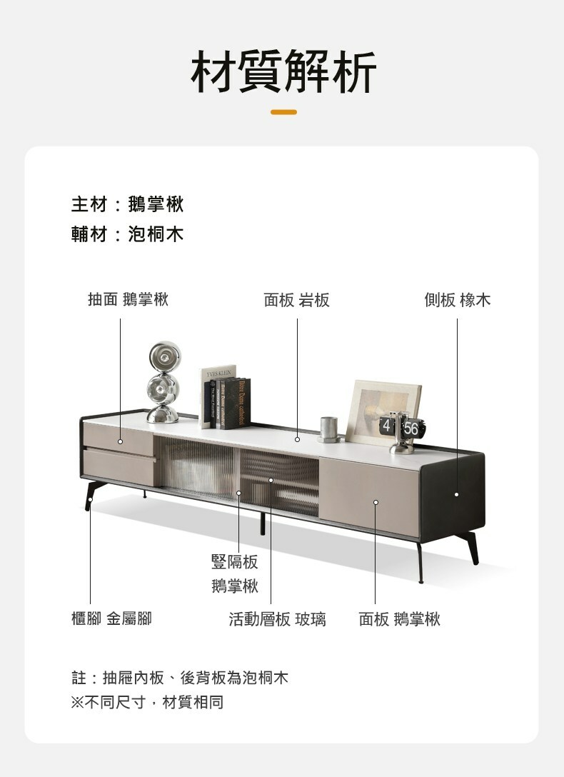 *注意:以下為情境示意圖,實際商品款式為萊可實木輕奢岩板電視櫃1.8M X167N01