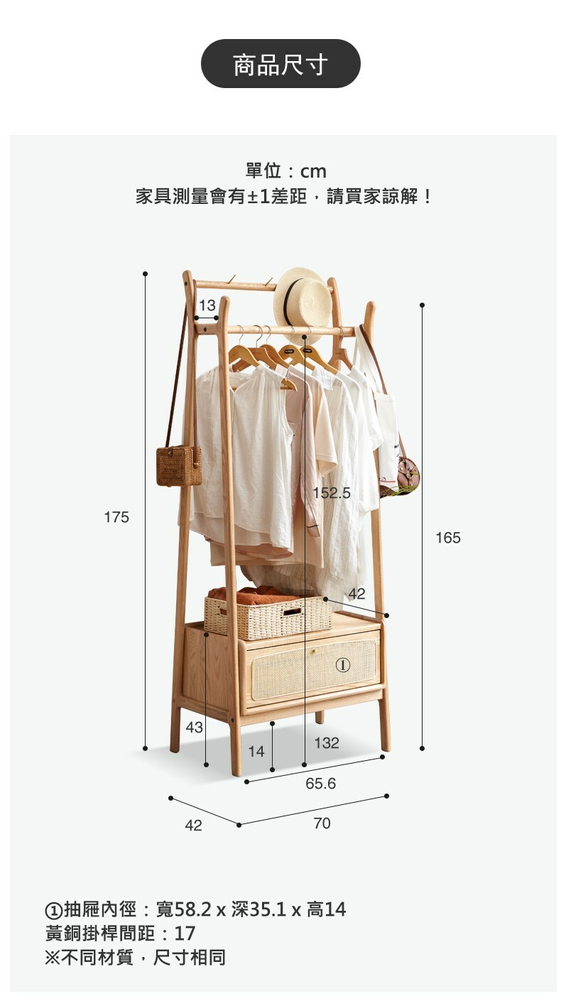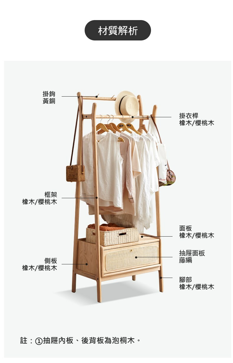 *注意:以下為情境示意圖,實際商品款式為橡木原木色藤編掛衣架 Y49I02