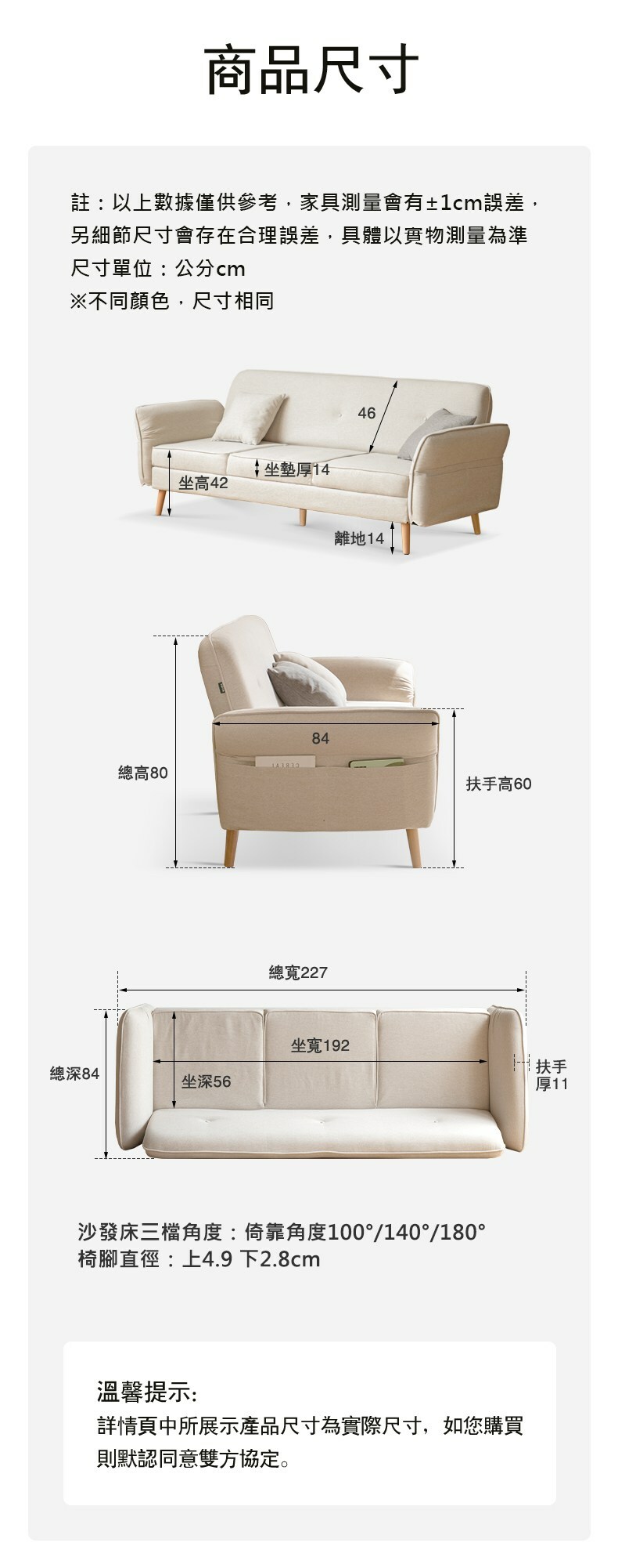 *注意:以下為情境示意圖,實際商品款式為多功能實木沙發床 S0407 米白
