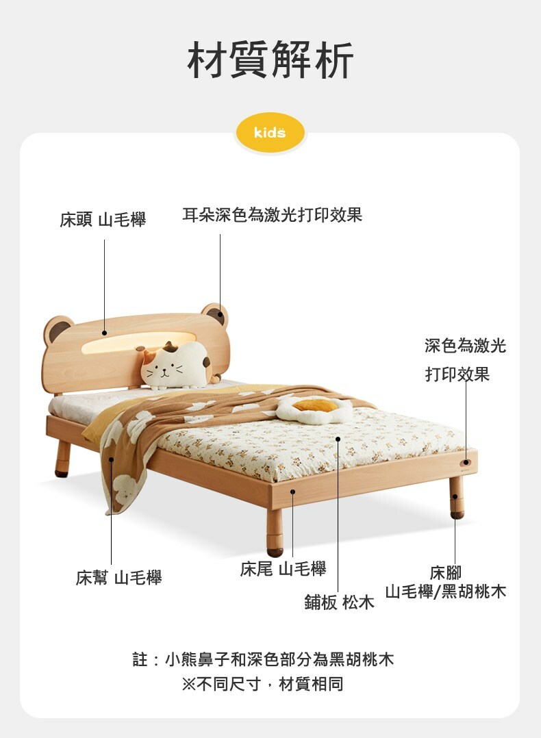*注意:以下為情境示意圖,實際商品款式為小熊造型實木夜燈兒童床架150x200 Y51B27