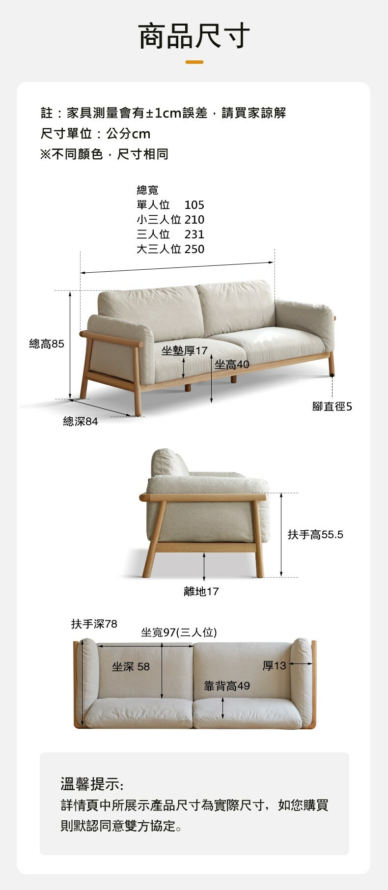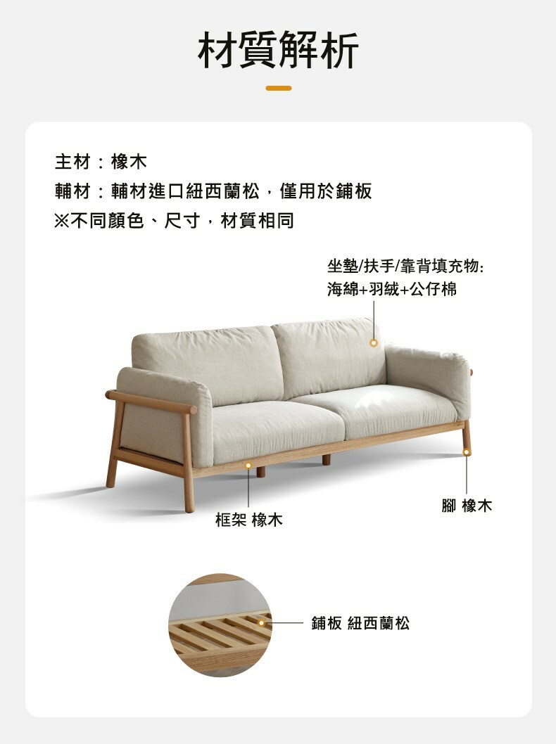 *注意:以下為情境示意圖,實際商品款式為柏林橡木可拆洗小三人座布沙發 Y83H01 砂礫白