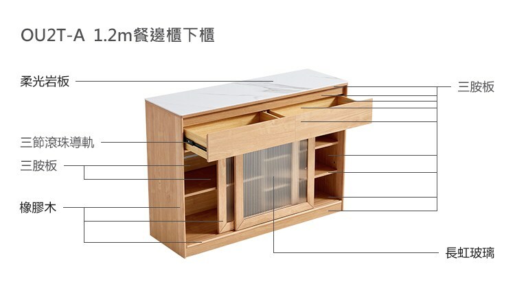 *注意:以下為情境示意圖,實際商品款式為圓滿多功能岩板1.2M餐邊櫃 OU2T