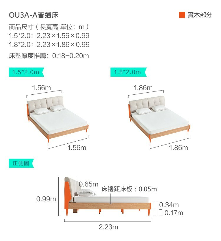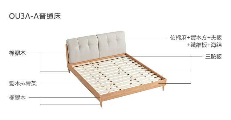 *注意:以下為情境示意圖,實際商品款式為北歐原木風床頭靠墊加大雙人180x200床架 OU3A-原木色