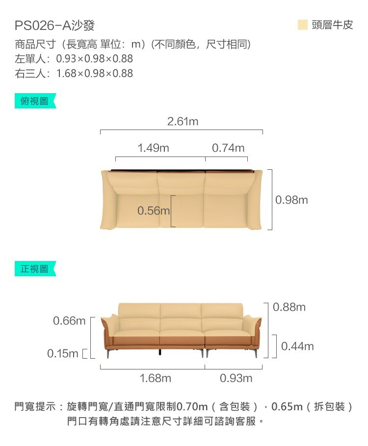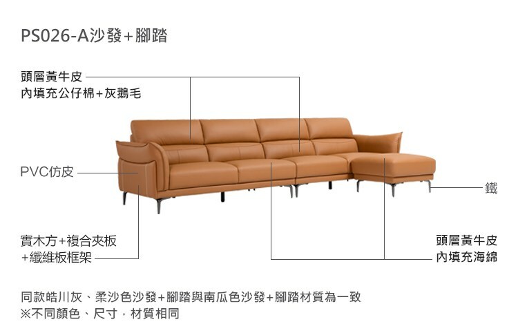 *注意:以下為情境示意圖,實際商品款式為簡約軟彈頭層牛皮四人沙發 PS026-皓川灰