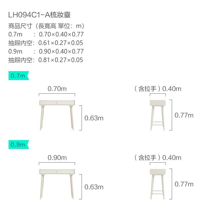 *注意:以下為情境示意圖,實際商品款式為純白奶油風實木玻璃0.9M單抽化妝桌 LH094