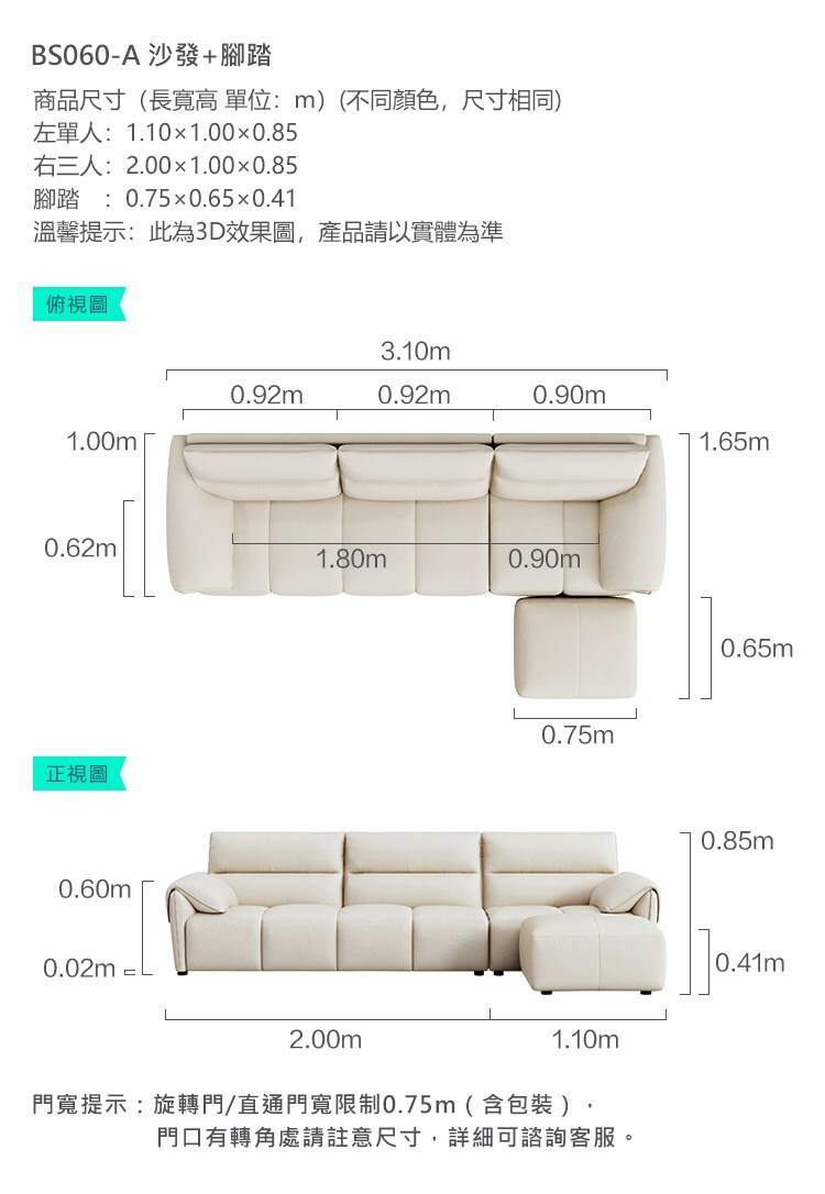 *注意:以下為情境示意圖,實際商品款式為琴鍵旋律科技布四人沙發+腳踏 BS060-米白色