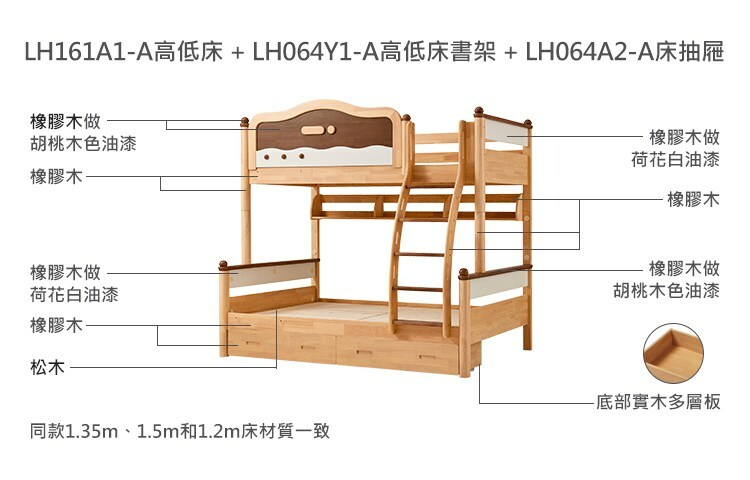 適用床墊尺寸-上鋪:寬90x長190CM、下鋪:寬120x長190CM