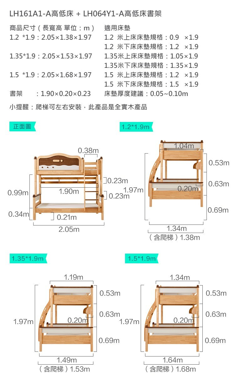 適用床墊尺寸-上鋪:寬90x長190CM、下鋪:寬120x長190CM