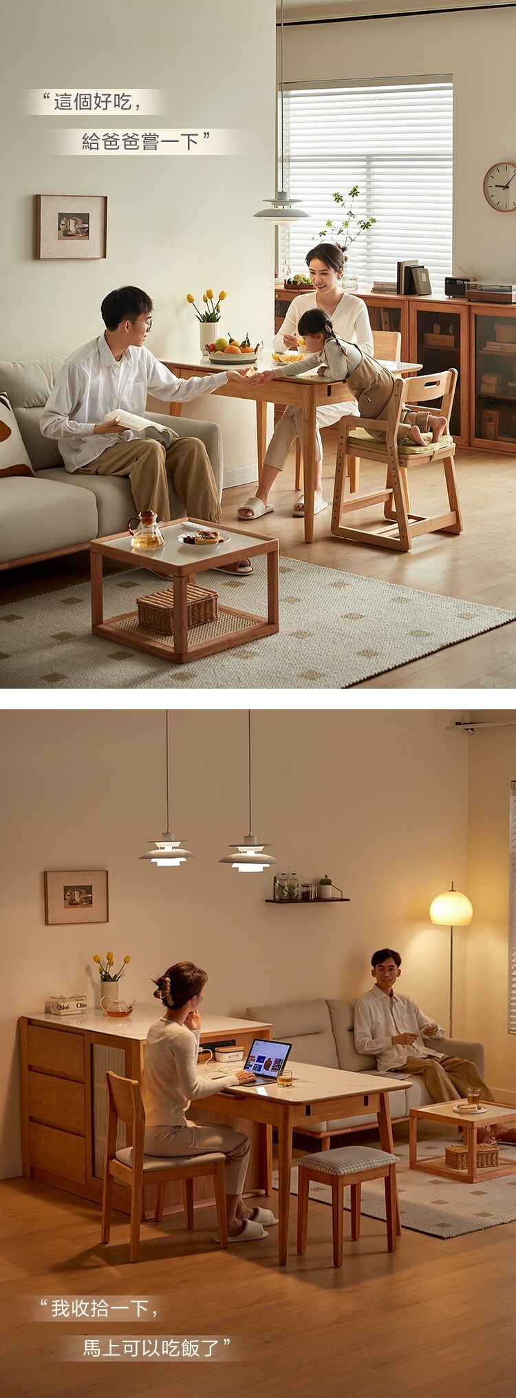 *注意:以下為情境示意圖,實際商品款式為常伴原木風岩板可伸縮餐桌 LH628