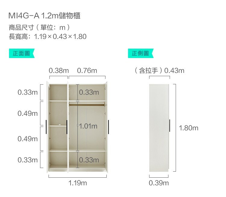 *注意:以下為情境示意圖,實際商品款式為小方糖系列1.2M三門衣櫃 MI1G