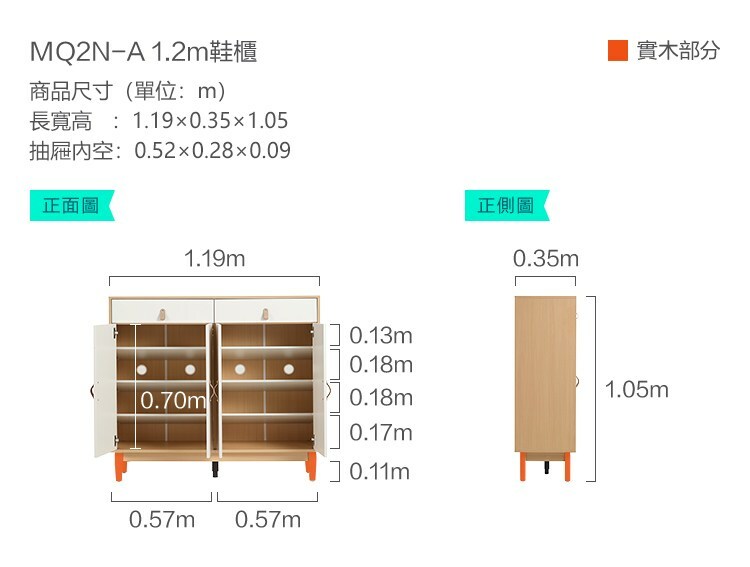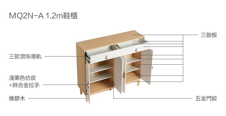 *注意:以下為情境示意圖,實際商品款式為原木系清新1.2M雙抽四門鞋櫃 MQ2N