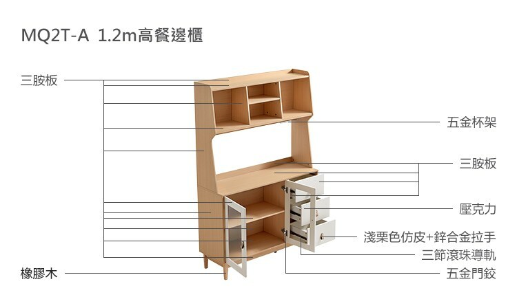 *注意:以下為情境示意圖,實際商品款式為原木系清新1.2M收納高餐櫃 MQ2T