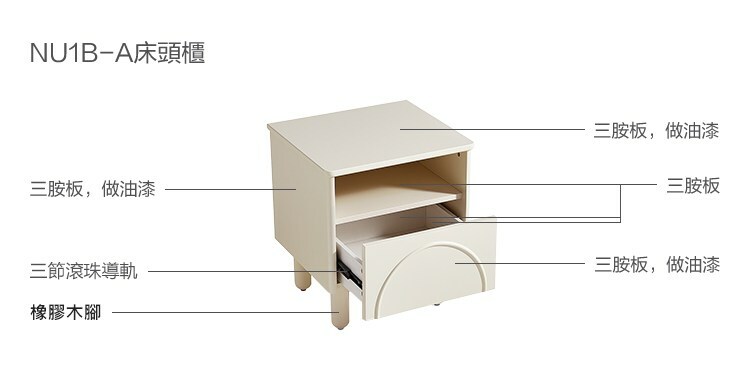 *注意:以下為情境示意圖,實際商品款式為奶油侘寂風單抽床頭櫃 NU1B