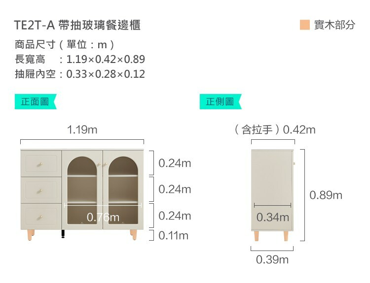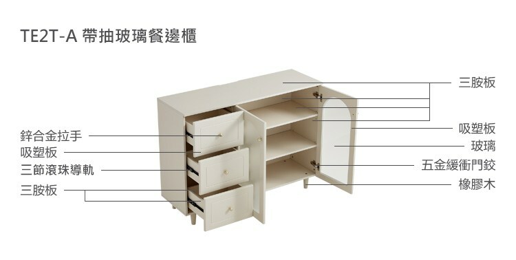 *注意:以下為情境示意圖,實際商品款式為椰子糖系列1.2M玻璃餐邊櫃 TE2T