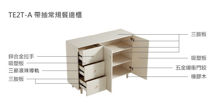 *注意:以下為情境示意圖,實際商品款式為椰子糖系列1.2M儲物餐邊櫃 TE2T