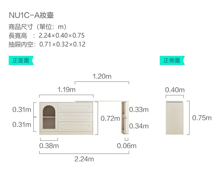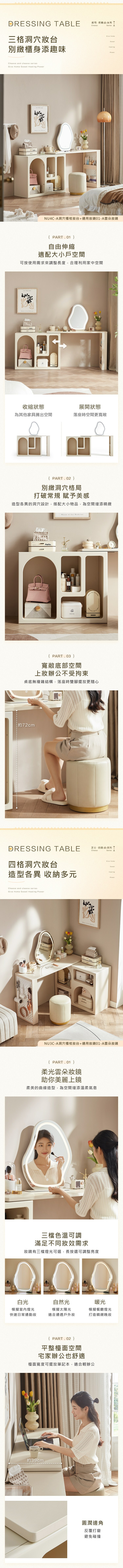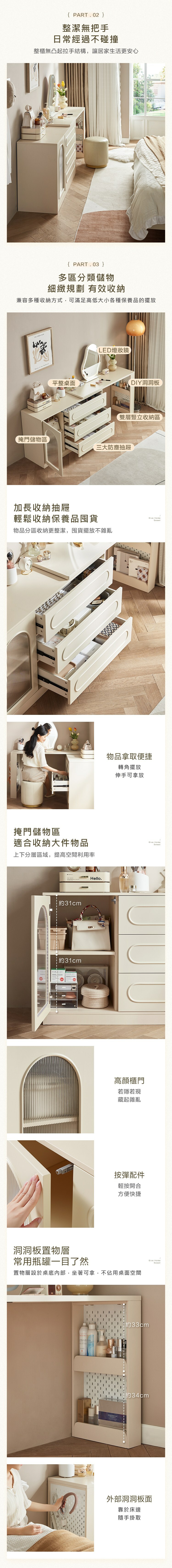 *注意:以下為情境示意圖,實際商品款式為奶油侘寂風抽屜櫃附鏡可伸縮化妝桌組 NU1C (附妝凳 JF2H)