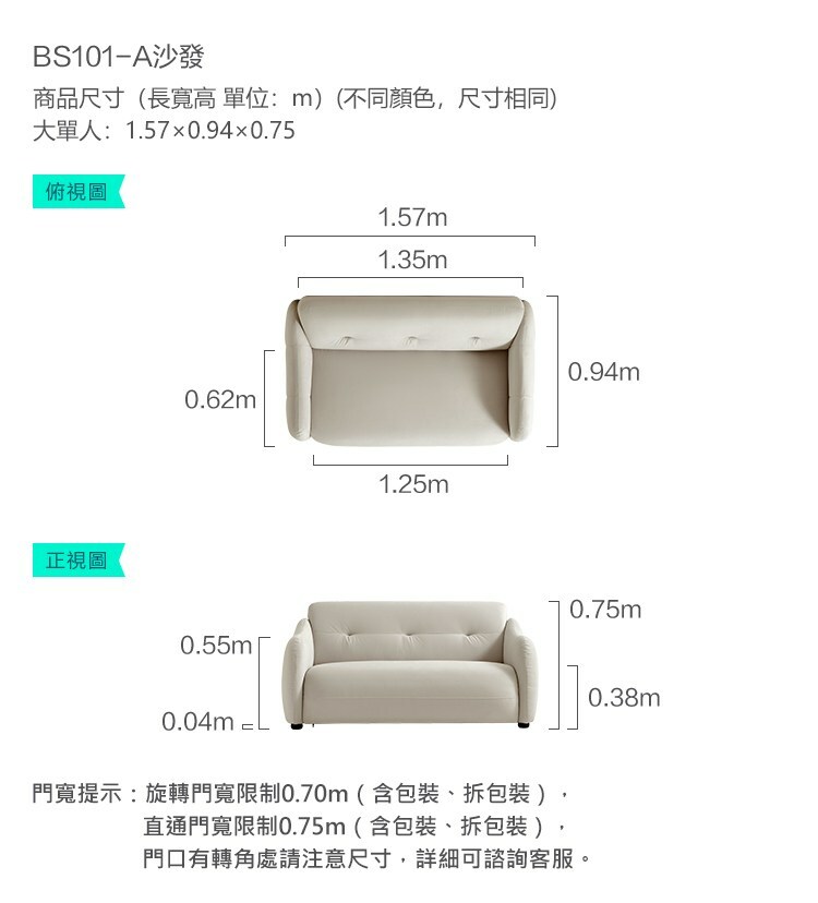 *注意:以下為情境示意圖,實際商品款式為奶油雲朵大單人沙發 BS101-淺灰色