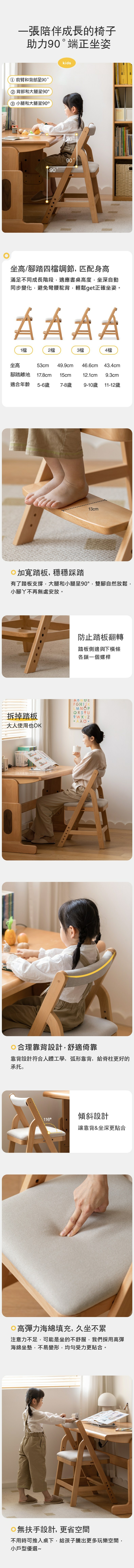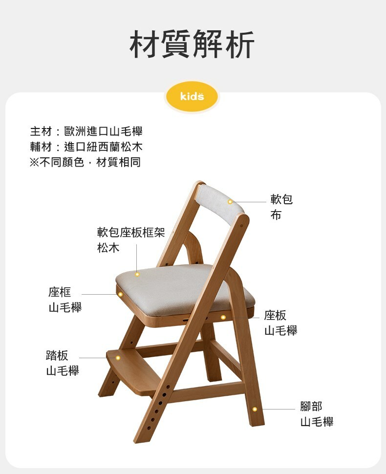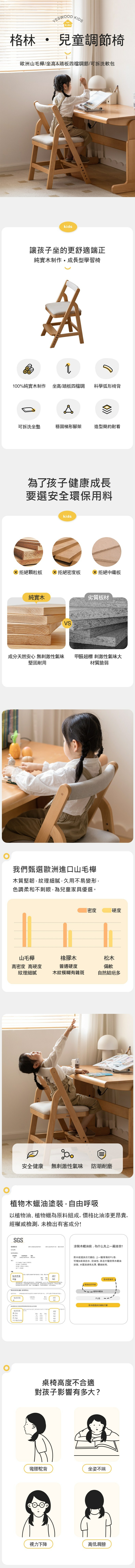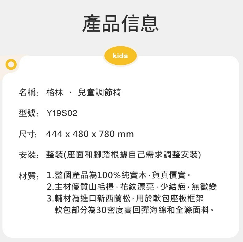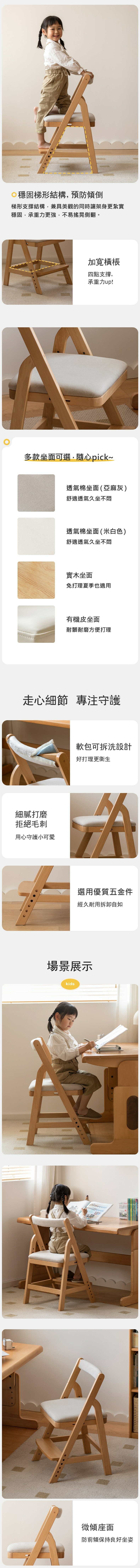 *注意:以下為情境示意圖,實際商品款式為格林實木可調節兒童成長椅 Y19S02 亞麻灰
