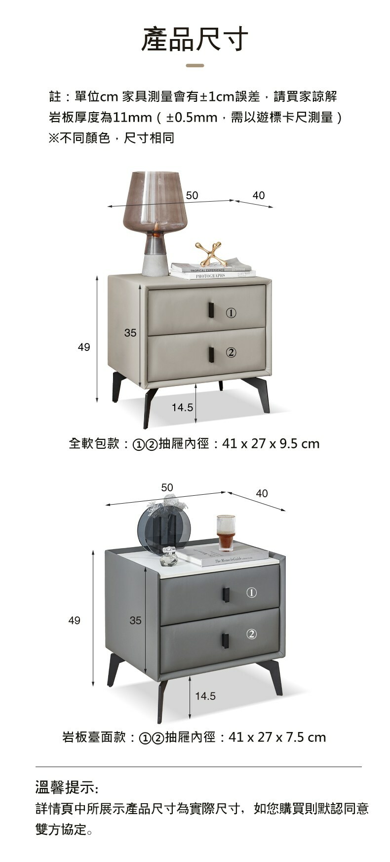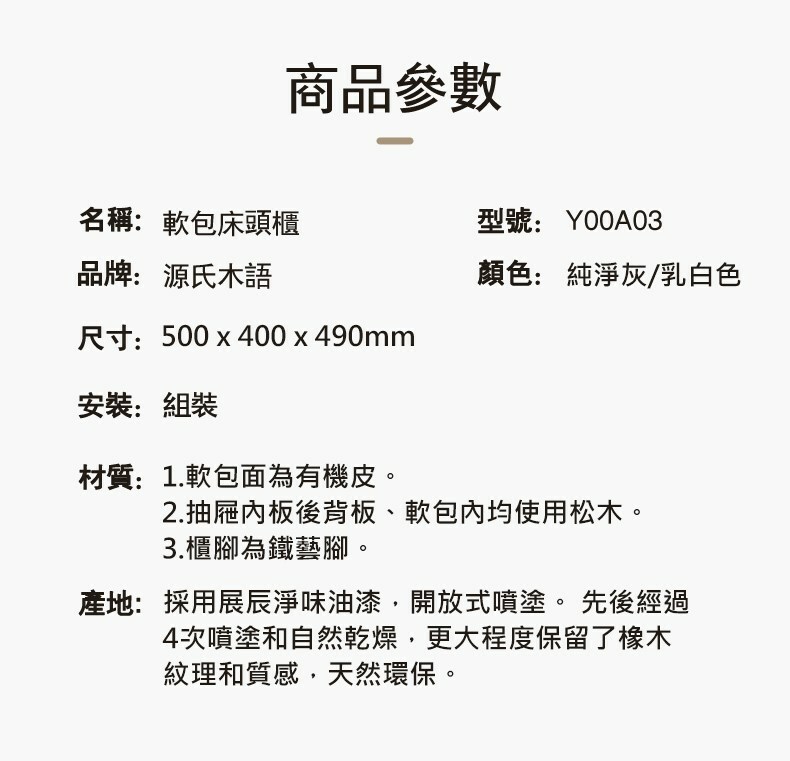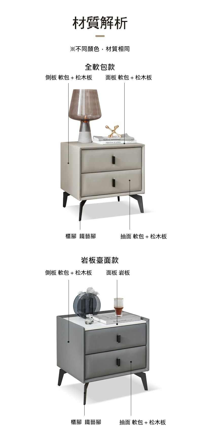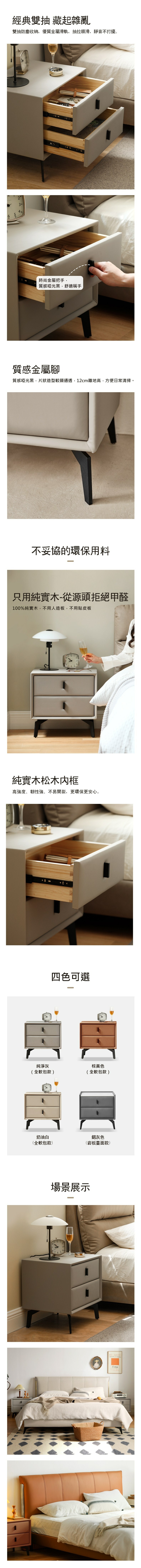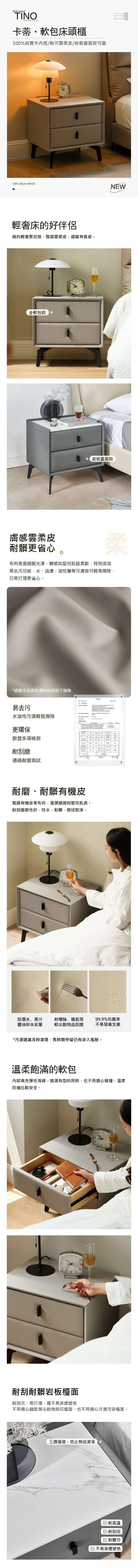 *注意:以下為情境示意圖,實際商品款式為卡蒂輕奢簡約實木皮質床頭櫃 Y00A03 純淨灰