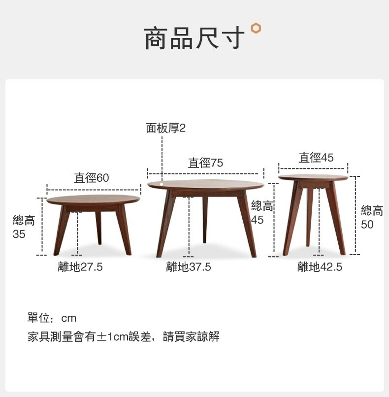 *注意:以下為情境示意圖,實際商品款式為柏林橡木胡桃色大圓茶几0.75M+高圓邊几 H83J01