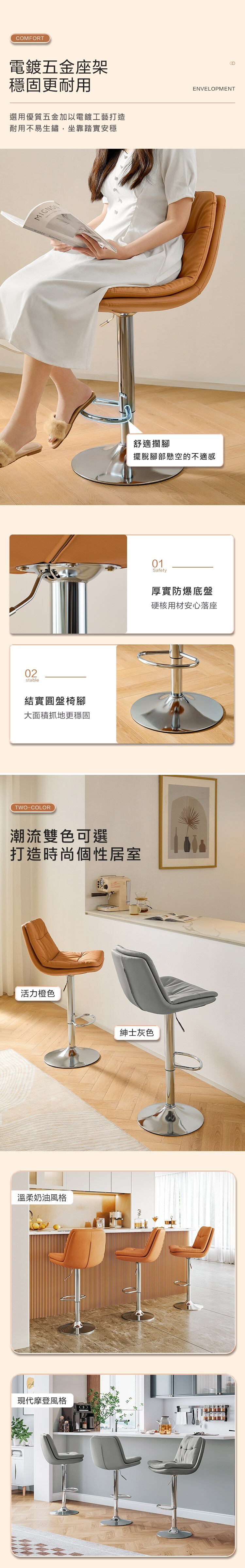 *注意:以下為情境示意圖,實際商品款式為時尚品味可升降吧檯椅 BY061-灰色