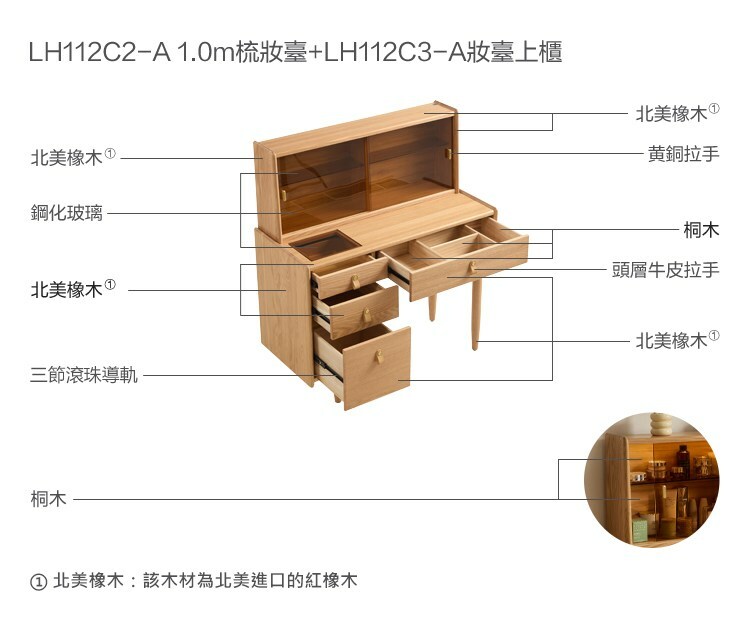 *注意:以下為情境示意圖,實際商品款式為好宅系列實木1M化妝桌組 LH112 (附妝凳 LH112)