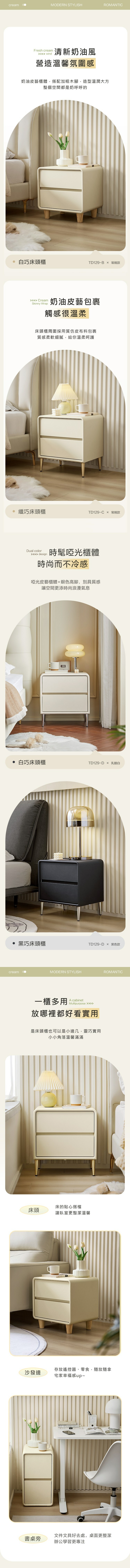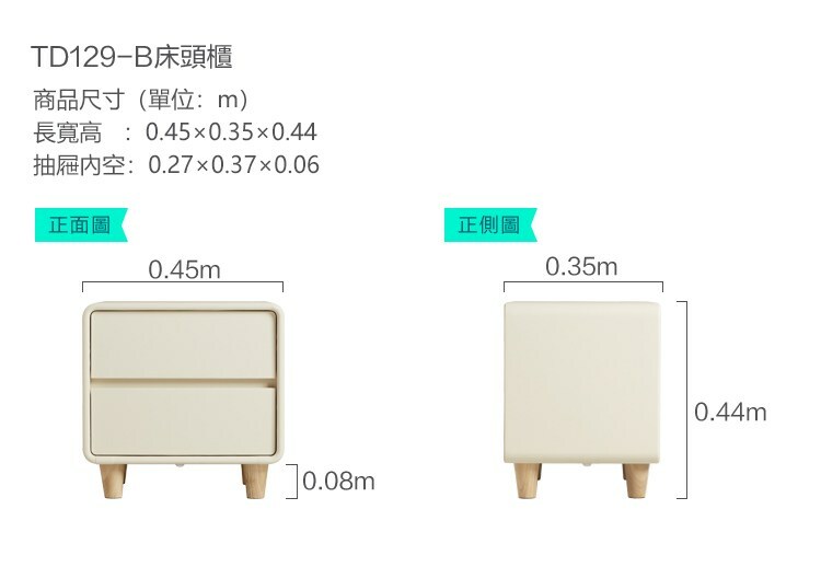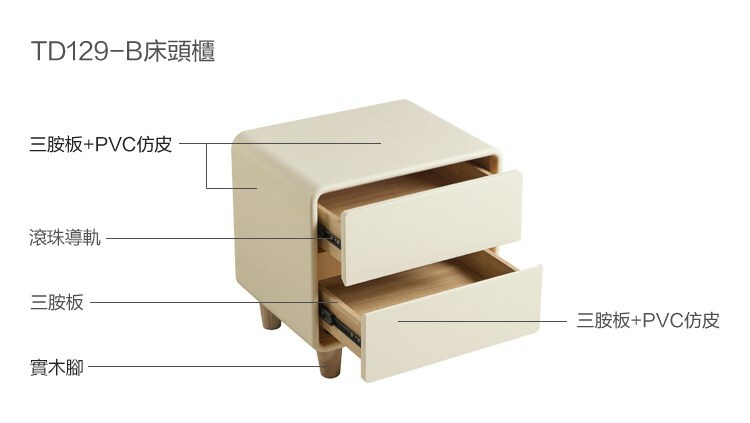 *注意:以下為情境示意圖,實際商品款式為奶油風圓潤雙抽木腳床頭櫃 TD129