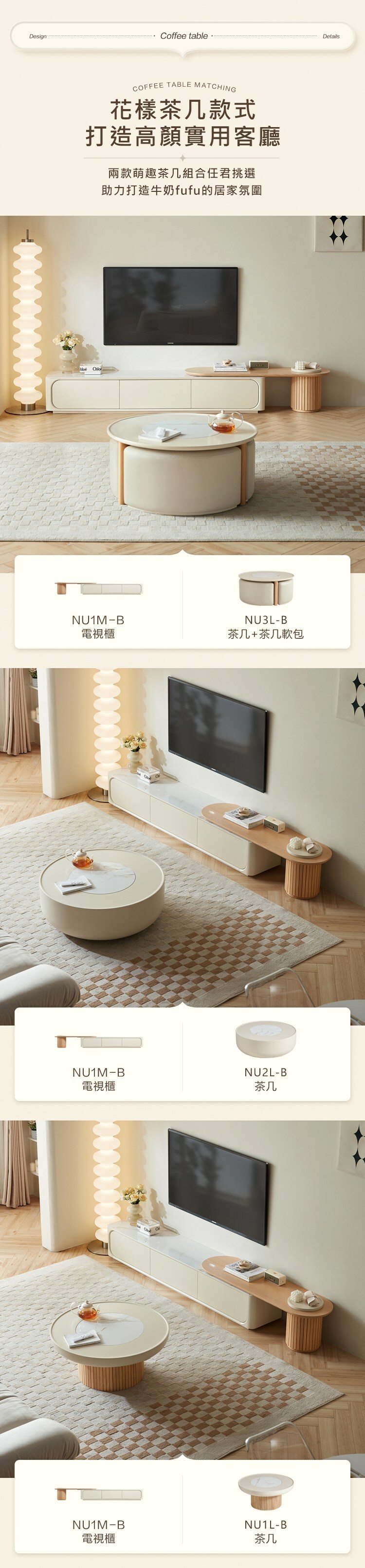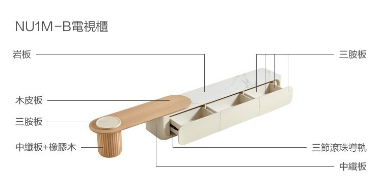 *注意:以下為情境示意圖,實際商品款式為奶油侘寂風岩板伸縮電視櫃 NU1M