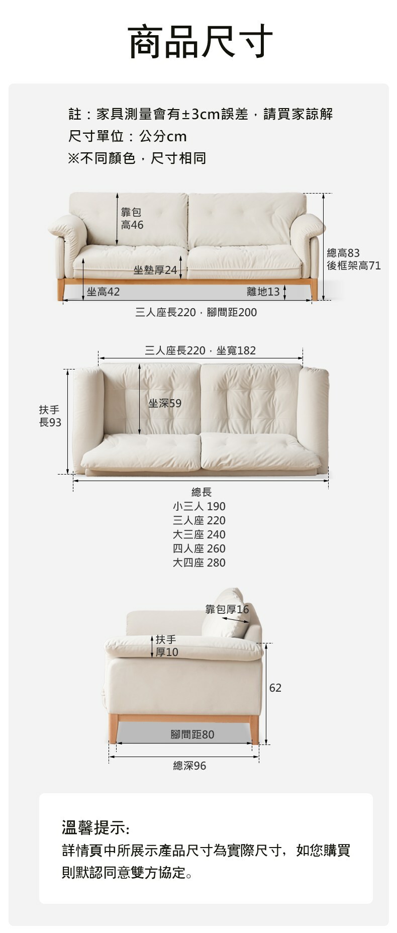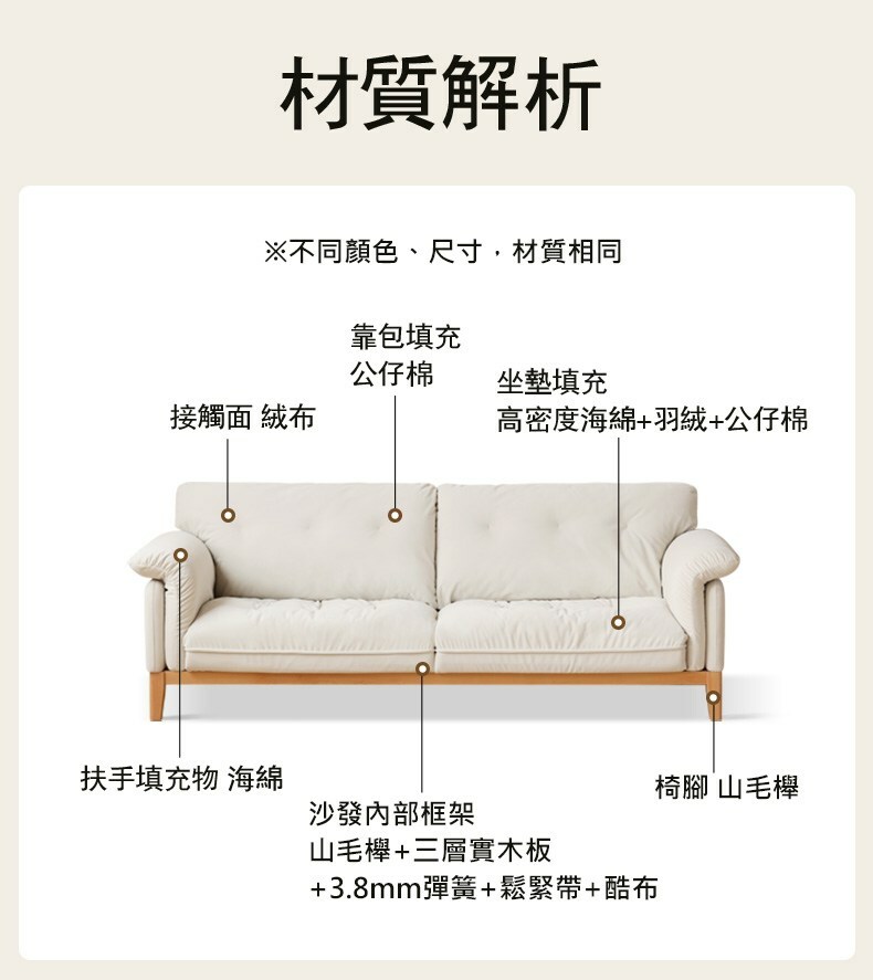 *注意:以下為情境示意圖,實際商品款式為慕斯奶油風實木小三人座布沙發 S03227