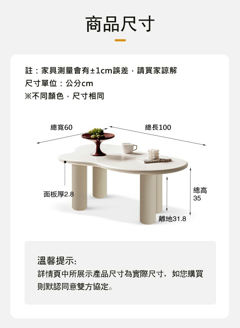 *注意:以下為情境示意圖,實際商品款式為奶油風實木雲朵茶几1M Y00J51